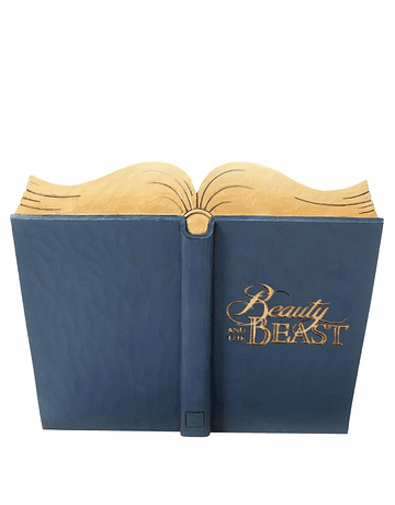 Um conto tão antigo quanto o tempo e uma música tão antiga quanto a rima... essa bela e sua fera levam os livros de histórias a uma dimensão totalmente nova. Projetado pelo premiado artista e escultor Jim Shore para a marca Disney Traditions. Título do livro escrito em tinta dourada no verso do livro. A estatueta é feita de pedra fundida. Embalado em caixa de presente da marca. Variações únicas devem ser esperadas, pois este produto é pintado à mão