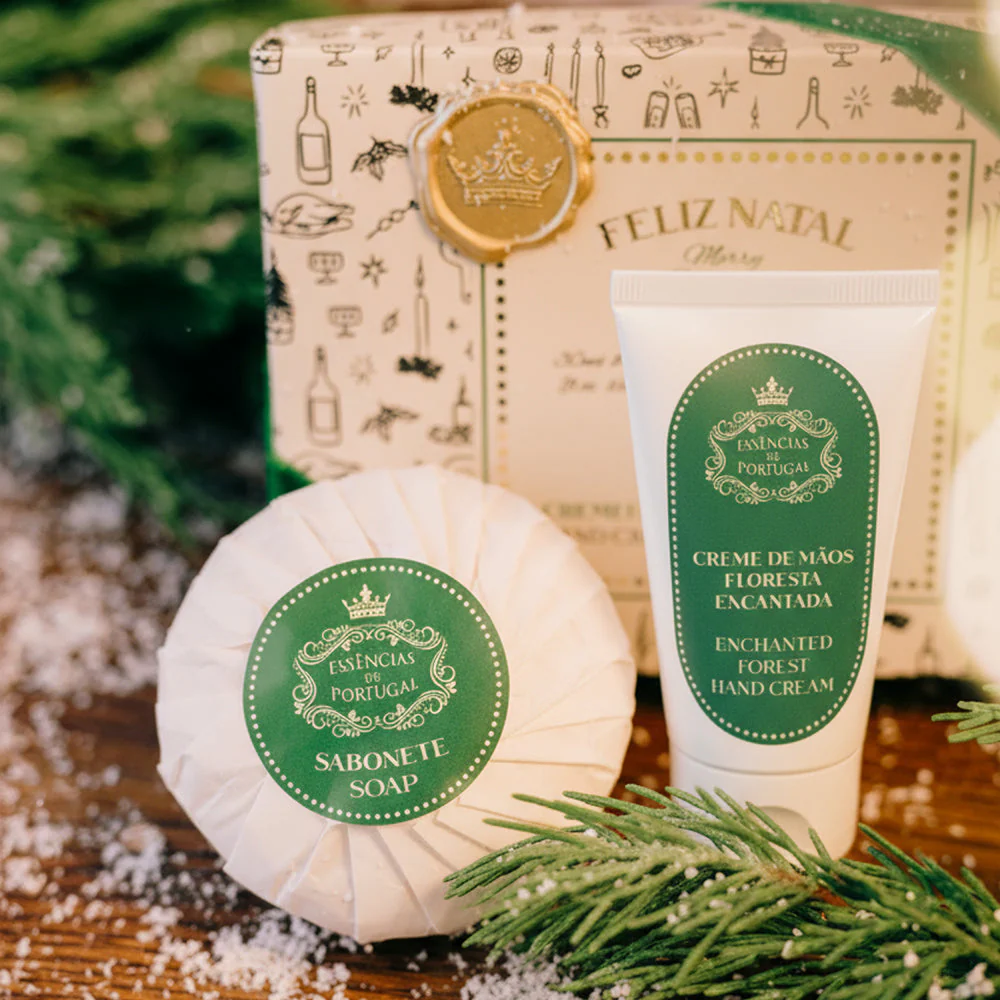 A embalagem elegante, adornada com fita de veludo verde e lacre dourado, faz deste pack o presente perfeito para celebrar o Natal com sofisticação e naturalidade.