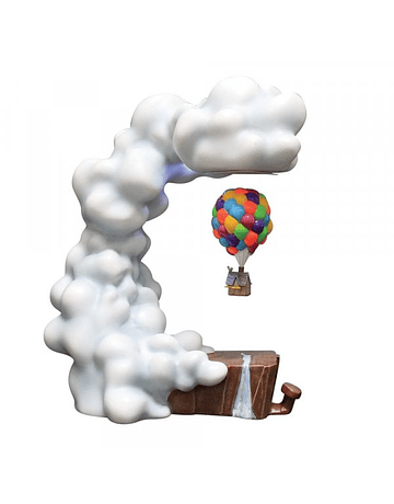 O vento aumenta e mais balões do que qualquer um pode contar sobem da chaminé, pegando nas rajadas. A aventura está por aí, e parece que esta casa flutuante está a caminho de oferecer aos seus passageiros a viagem mais extraordinária. Preenchido com todo o conforto da criatura e abastecido com suprimentos e um mapa para mostrar o caminho, não há como os espíritos caírem neste vôo. Mesmo que o céu escureça acima, um arco-íris artificial brilhante está sempre à vista para encher o dia de cor. Não pode haver uma maneira melhor de viajar. Só que, por mais caprichoso que seja o voo de Carl Fredrickson para Paradise Falls, é apenas algo que podemos sonhar em experimentar.